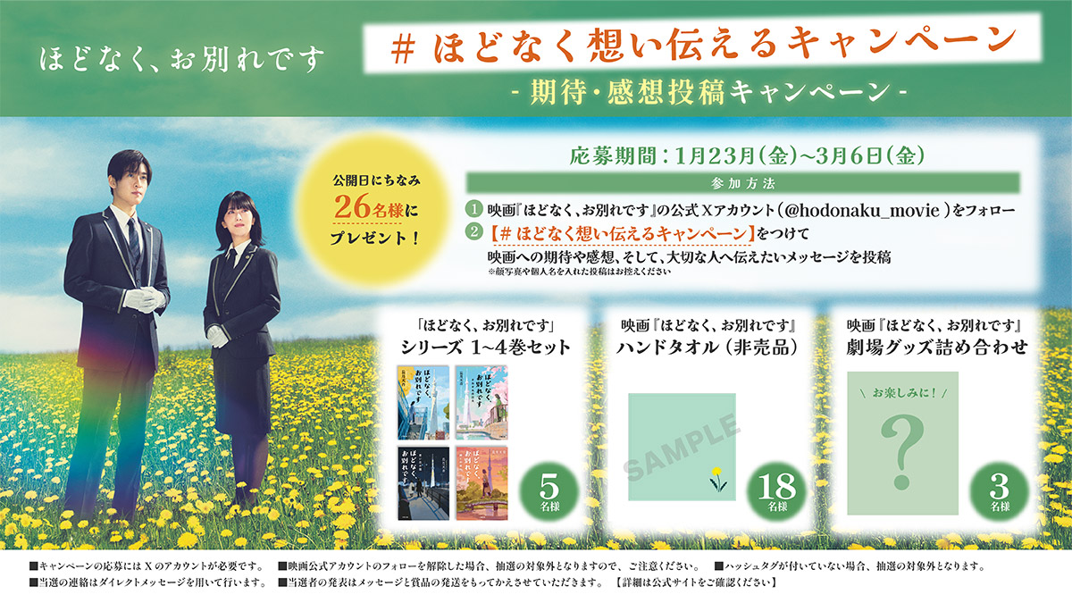 2月6日(金)~2月8日(日)の3日間、映画『ほどなく、お別れです』上映館にて本作鑑賞お一人様につき、1つプレゼント致します。